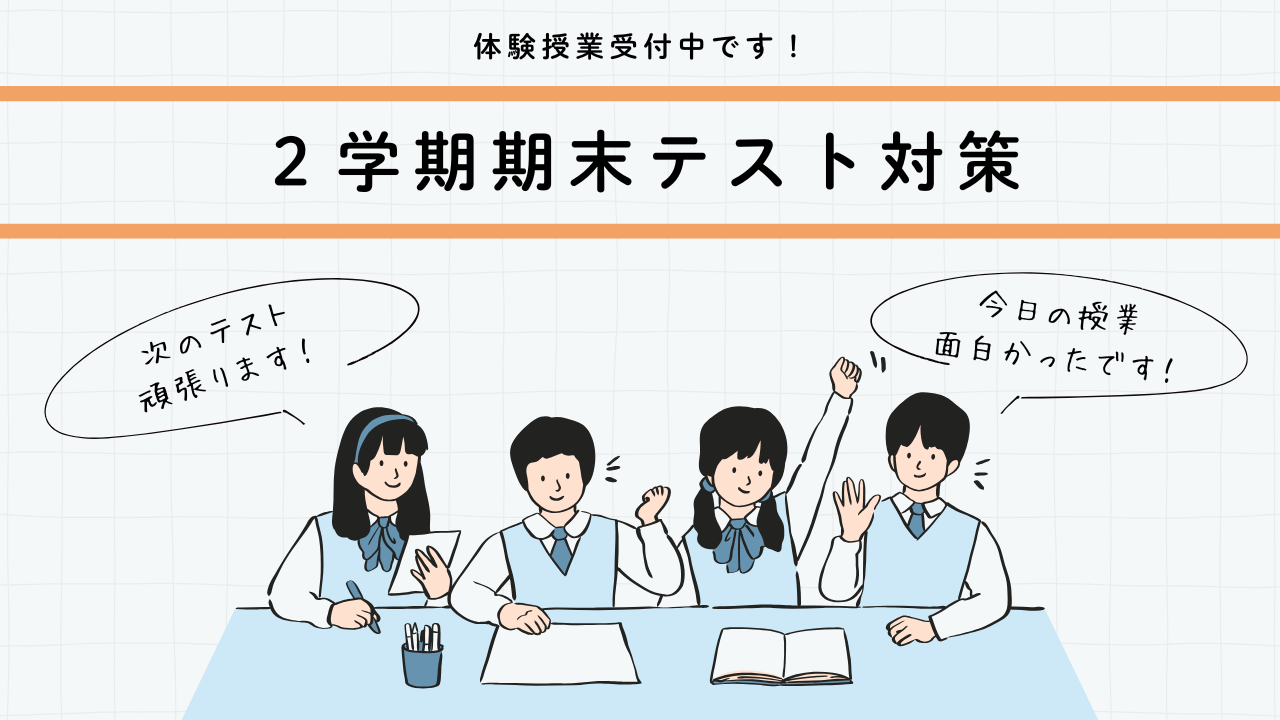 - 中3生向け: 期末テストは内申点に直結するので、受験対策も兼ねて本気で。