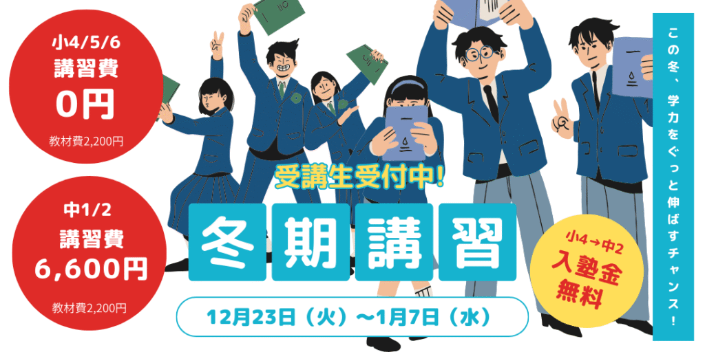 | 5日目 | 中1総復習+中2先取り(比較級) | 比例・反比例+先取り | 長文読解 記述対策 | 1・2分野 弱点単元特訓 | 歴史 江戸時代~明治維新 |